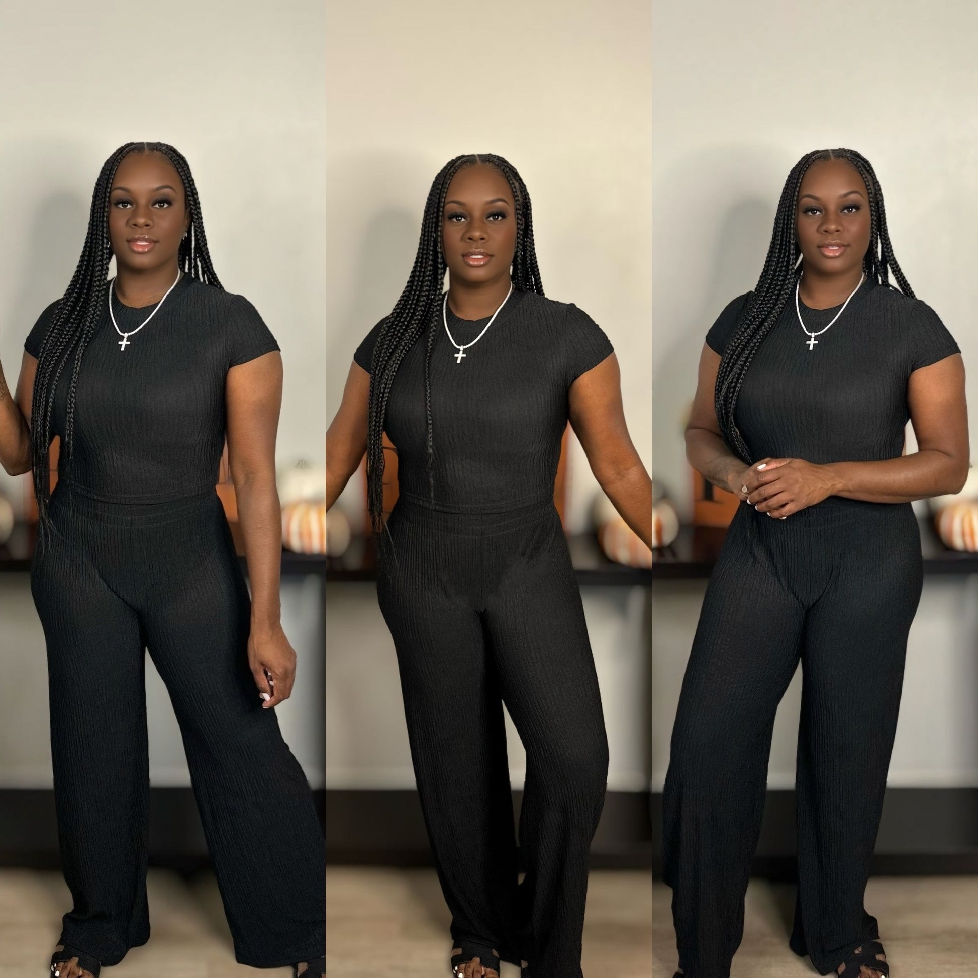 2 Piece Cropped Top and Wide Leg Stretch Pants